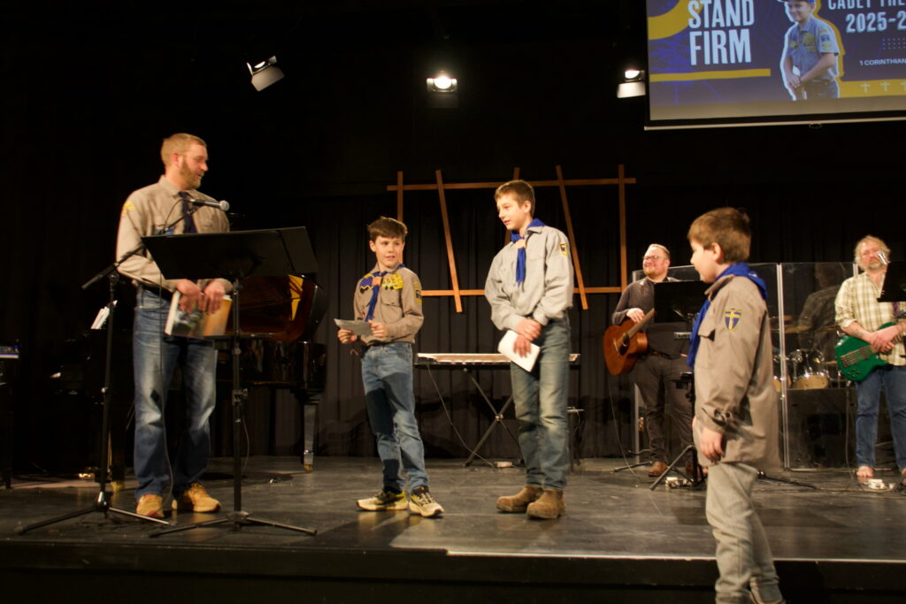 Ron introduced the offering for Cadets and then Jacob and Sam shared about their experiences at Cadets. The boys enjoyed events like the Snow Derby, Cadet-o-rama, camping, building their tool boxes and doing badge work. They were happy to report that they placed 1st overall in the Cadet-o-rama.