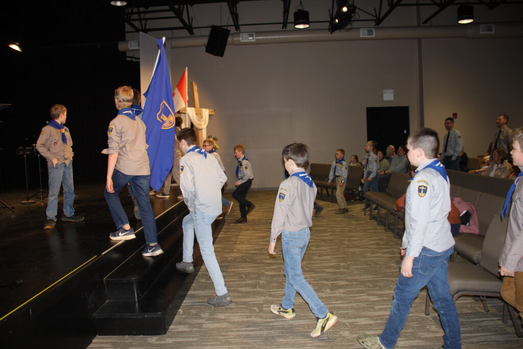 The boys were happy to participate in our Cadet Sunday service. They gathered in the fellowship hall, ready to enter the auditorium.