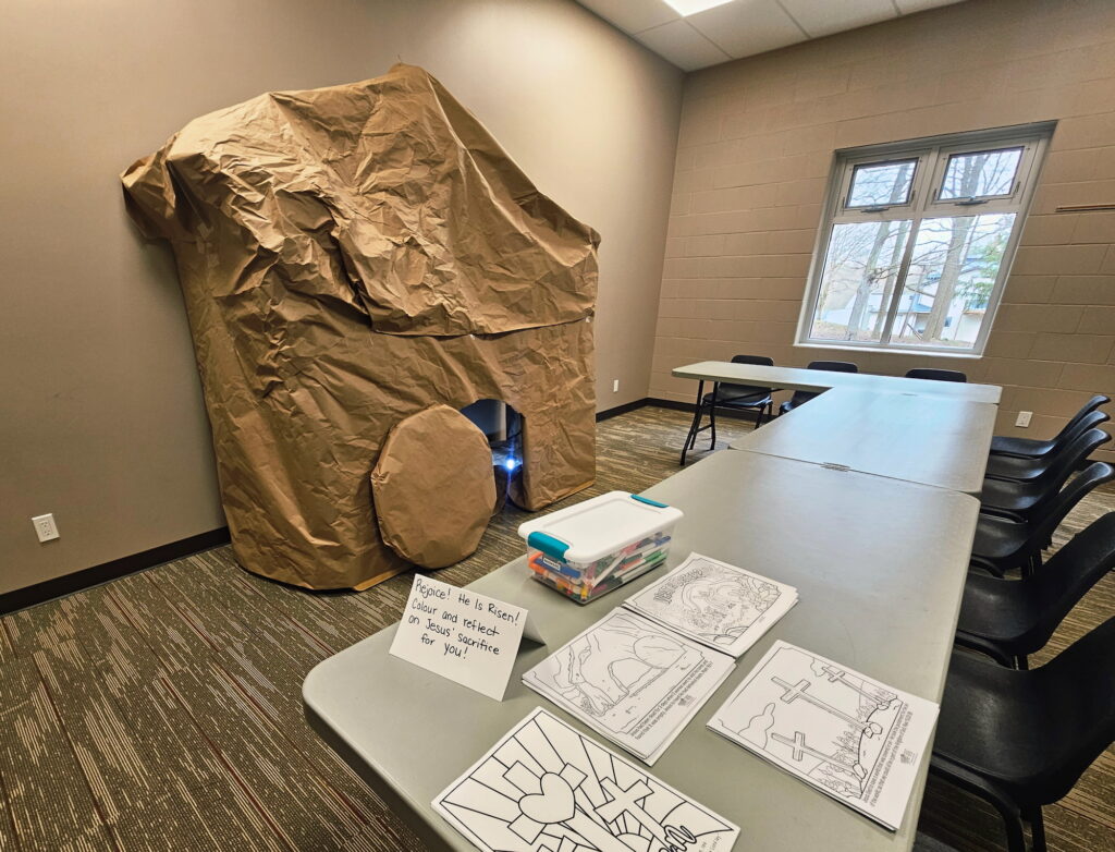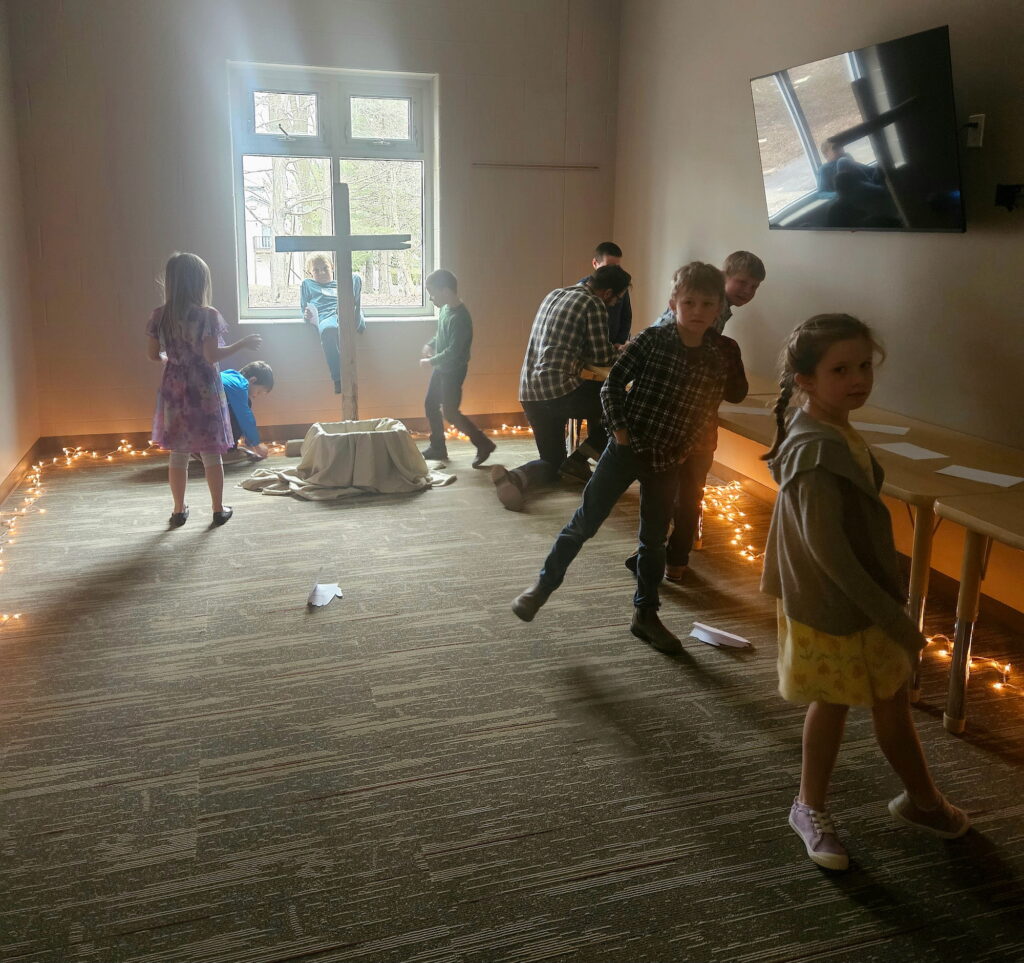 Nicole Klasen, our children’s ministry director, and her team of helpers worked hard to put together an Easter immersive experience for the kids this year.